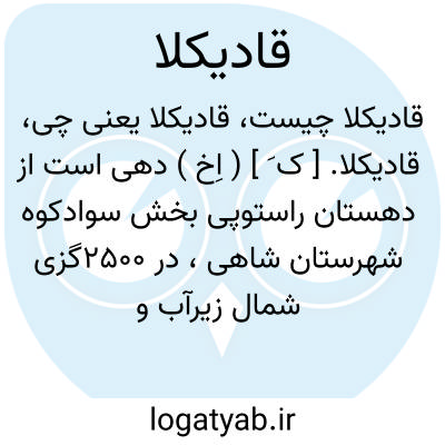 قادیکلا. [ ک َ ] ( اِخ ) دهی است از دهستان درکاسعیده بخش چهاردانگه شهرستان ساری. در 18000گزی شمال باختری کیاسر و کنار راه عمومی کیاسر به ساری واقع و موقعیت جغرافیائی آن کوهستانی جنگلی و هوای آن معتدل و مرطوب ومالاریائی است. 320 تن سکنه دارد. آب آن از چشمه و رودخانه گرم آب و محصولات آن غلات و برنج و ارزن و شغل اهالی زراعت و صنایع دستی آنان شال و کرباس بافی است. راه مالرو دارد. ( از فرهنگ جغرافیائی ایران ج 3 ).
