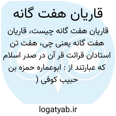 هفت تن استادان قرائت قر آن در صدر اسلام که عبارتند از: ابوعماره حمزه بن حبیب کوفی ( ف. ۱۵۴ یا ۱۵۸ ه ق. ) عاصم بن ابی الجنود معروف ابن ابی النجود کوفی ( ف. ۱۲۹ ه ق. ) ابوالحسن علی بن حمزه کسائی کوفی ( ف. ۱۸۹ ه ق. ) نافع بن عبدالرحمن بن ابی نعیم ( یا ابی رویم ) مدنی ( ف. ۱۶۹ ه ق. ) عبدالله بن کثیر مکی ( ف. ۱۲٠ ه ق. ) ابو عمرو ابن علائ مازنی بصری ( ف. ۱۵۴ ه ق. ) عبدالله بن عامر بن زیدبن تمیم شامی ( ف. ۱۱۸ هق. ) هر یک ازین قاریان دو راوی داشته و بنابراین چهارده راوی و چهارده روایت وجود دارد. اسامی آنانرا چنین بنظم در آوردهاند [ استاد قرائت بشمر پنج و دو پیر بو عمر و وعلا و نافع و ابن کثیر] [ پس حمزه و ابن عمر و عاصم را از جنس کسائی بشمر هفت بگیر. ] [ نافع مدنی ابن کثیر از مکه بو عمروز بصره ابن عامر از شام.] [ پس عاصم و حمزه و کسائی کوفی این نسبت جمله شان بود و الاکرام.] ( شرح نصاب ۱۷۶ )
