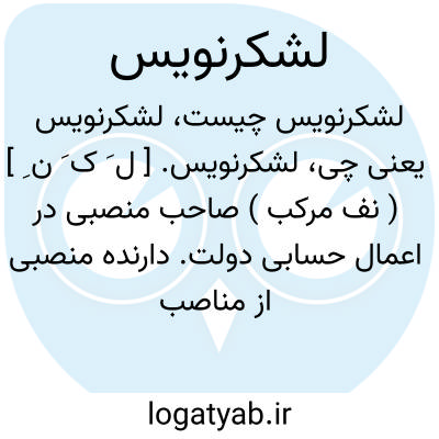 لشکرنویس. [ ل َ ک َ ن ِ ] ( نف مرکب ) صاحب منصبی در اعمال حسابی دولت. دارنده منصبی از مناصب محاسباتی مالیه قدیم. منصبی از مناصب به زمان قاجاریه مختص محاسبات سپاه.