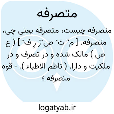 متصرفه. [ م ُ ت َ ص َرْ رِ ف َ ] ( ع ص ) مالک شده و در تصرف و در ملکیت و دارا. ( ناظم الاطباء ).