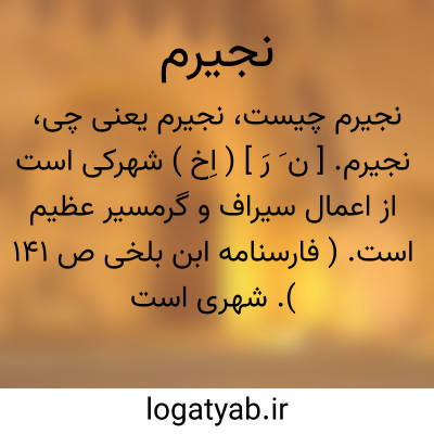 نجیرم. [ ن َ رَ ] ( اِخ ) شهرکی است از اعمال سیراف و گرمسیر عظیم است. ( فارسنامه ابن بلخی ص 141 ). شهری است به ناحیت پارس بر کران دریا و جای بازرگانان است. ( حدودالعالم ). قریه ای است بزرگ به ساحل فارس به پانزده فرسنگی سیراف، واز آنجاست ابراهیم بن عبداﷲ نحوی لغوی مکنی به ابواسحاق. ( یادداشت مؤلف ). و رجوع به معجم البلدان شود.