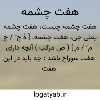 هفت چشمه. [ هََ چ ِ م َ ] ( اِخ ) دهی است از بخش شبستر شهرستان تبریز که 284 تن سکنه دارد. آب آن از چشمه و محصول عمده اش غله و حبوب است. ( از فرهنگ جغرافیائی ایران ج 4 ).