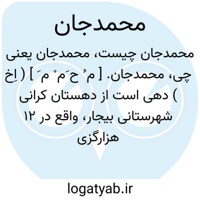محمدجان. [ م ُ ح َم ْ م َ ] ( اِخ ) دهی است از دهستان کرانی شهرستانی بیجار، واقع در 12 هزارگزی شمال باختر حسن آباد سوگند و 2 هزارگزی قزل تپه با 215 تن سکنه. آب آن از چشمه و راه آن مالرو است. ( از فرهنگ جغرافیایی ایران ج 5 ).