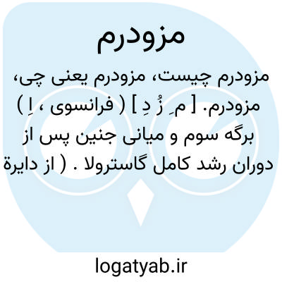 (مِ زُ دِ ) [ فر. ] (اِ. ) ۱ - لایة زایندة میانی جنین که بین روپوست و درون پوست قرار دارد و از آن بافت پیوندی و عضلات و استخوان ها و دستگاه ادراری - تناسلی و سیستم گردش خون پدید می آید، میان پوست. (فره ). ۲ - لایة میانی در پوشش خارجی خزه ها.