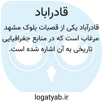 ( قادرآباد ) قادرآباد. [ دِ ] ( اِخ ) قصبه ای است از قصبات بلوک مشهد مرغاب. ( جغرافیای تاریخی غرب ایران ص 107 ).