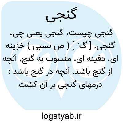 گنجی. [ گ َ ] ( ص نسبی ) خزینه ای. دفینه ای. منسوب به گنج. آنچه از گنج باشد. آنچه در گنج باشد: