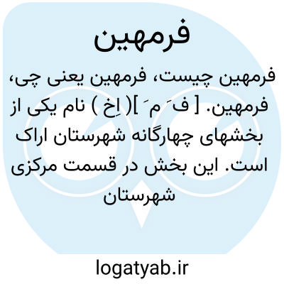 فرمهین. [ ف َ م َ ] ( اِخ ) قصبه مرکزی بخش فرمهین شهرستان اراک و مختصات جغرافیایی آن به شرح زیر است: طول 49 درجه و 41 دقیقه، عرض 34 درجه و 30 دقیقه، ارتفاع از سطح دریا 1800 متر. این قصبه در 42هزارگزی شمال اراک و مرکز بلوک فراهان واقع است. ناحیه ای است واقع در دشت، سردسیر و دارای 1670 تن سکنه. از قنات مشروب میشود. محصولاتش غلات، انگور و انواع میوه، بنشن و پوست بره است. اهالی به کشاورزی و گله داری گذران میکنند. از صنایع دستی زنان قالیچه بافی با نخ فرنگ و نقشه است. راه نیمه شوسه به اراک دارد و همه روزه اتومبیل رفت و آمد می کند. به علاوه به قراء سربند و آشتیان در فصل خشک اتومبیل میتوان برد. اداره بخشداری و شعبه ٔپست در قصبه ایجاد شده و نامه ها در هفته دو روز با پیک سوار به اراک حمل میشود. مزارع فرمنک و شریف آبادجزء فرمهین است. ( از فرهنگ جغرافیایی ایران ج 2 ).