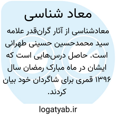[ویکی فقه] معاد شناسی (کتاب). معاد شناسی، یکی از آثار ارزشمند علامه طهرانی بشمار می رود.