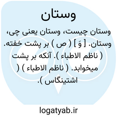 وستان. [ وَ ] ( ص ) بر پشت خفته. ( ناظم الاطباء ). آنکه بر پشت میخوابد. ( ناظم الاطباء ) ( اشتینگاس ). مصحف ستان.