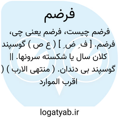 فرضم. [ ف ِ ض ِ ] ( ع ص ) گوسپند کلان سال یا شکسته سرونها. || گوسپند بی دندان. ( منتهی الارب ) ( اقرب الموارد ).