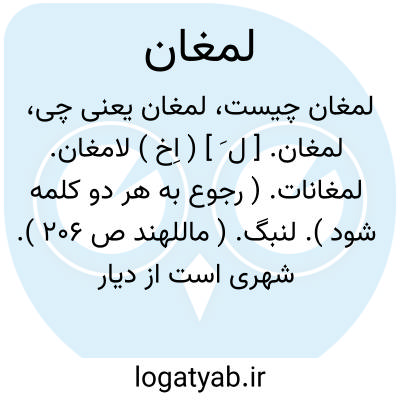 لمغان. [ ل َ ] ( اِخ ) لامغان. لمغانات. ( رجوع به هر دو کلمه شود ). لنبگ. ( ماللهند ص 206 ). شهری است از دیار سند از اعمال غزنین. شهری است ( به حدود هندوستان ). برمیانه، بر کنار رود نهاده و بارگه هندوستان است و جای بازرگانان است و اندر او بتخانه هاست و در این شهر بازرگانان مسلمانانند مقیم و آبادان است و بانعمت. ( حدودالعالم ). نام شهری بوده میان غور و غزنین. علاءالدین حسین بن حسین غوری، ملقب به جهانسوز که با سلاطین غزنویه مخاصمه داشته و غزنین را گرفته و آتش زده گفته است: