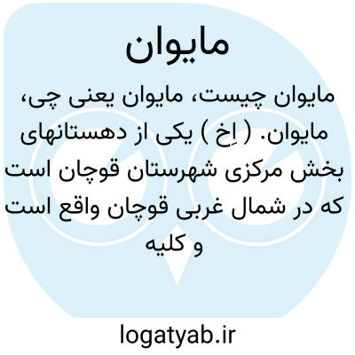 مایوان. ( اِخ ) یکی از دهستانهای بخش مرکزی شهرستان قوچان است که در شمال غربی قوچان واقع است و کلیه قرای آن عموماً درجنوب [ راه ] شوسه قوچان واقع است. کوهستانی و سردسیر است و محصول عمده آن غلات و انگور و صنایع دستی زنان قالیچه و پلاس بافی است. این دهستان از 18 آبادی بزرگ و کوچک تشکیل یافته و مجموع سکنه آن در حدود 9242 تن است که عموماً از طوایف زعفرانلو هستند. قرای عمده آن عبارت است از استاد که 999 وبزرل آباد که 631 تن سکنه دارد. ( از فرهنگ جغرافیایی ایران ج 9 ).