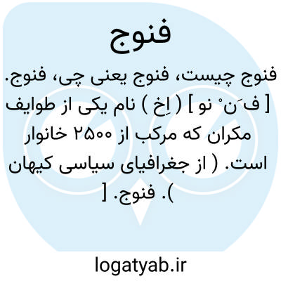 فنوج. [ ف َن ْ نو ] ( اِخ ) نام یکی از طوایف مکران که مرکب از 2500 خانوار است. ( از جغرافیای سیاسی کیهان ).
