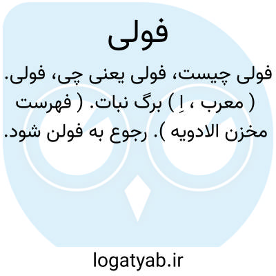 فولی. ( معرب، اِ ) برگ نبات. ( فهرست مخزن الادویه ). رجوع به فولن شود.