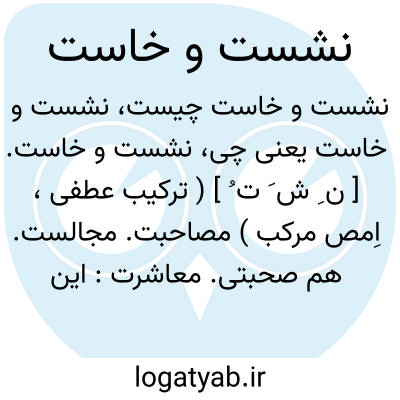 نشست و خاست. [ ن ِ ش َ ت ُ ] ( ترکیب عطفی، اِمص مرکب ) مصاحبت. مجالست. هم صحبتی. معاشرت: این رافعبن اللیث بن نصر مردی بود به سمرقند به میان لشکر سلطان اندر، روی شناس و مهتر بود و با زنان نشست و خاست کردی و شراب خوردی. ( ترجمه طبری بلعمی ). بوصادق را نشست و خاست افتاد با قاضی بلخ ابوالعباس. ( تاریخ بیهقی ص 206 ).