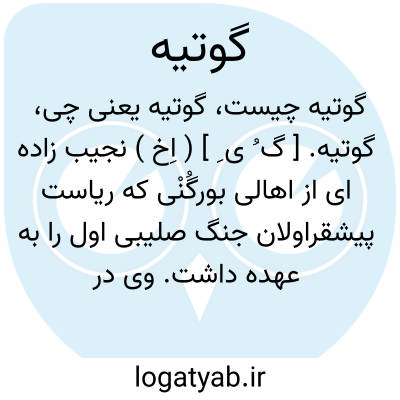 گوتیه. [ گ ُ ی ِ ] ( اِخ ) نجیب زاده ای از اهالی بورگُنْی که ریاست پیشقراولان جنگ صلیبی اول را به عهده داشت. وی در سال 1096 م. در نزدیکی نیسه درگذشت.