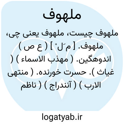 ملهوف. [ م َل ْ ] ( ع ص ) اندوهگین. ( مهذب الاسماء ) ( غیاث ). حسرت خورنده. ( منتهی الارب ) ( آنندراج ) ( ناظم الاطباء ). اندوهگین از درد یا رفتن مال. ( از اقرب الموارد ). متحسر. دریغخوار. ( یادداشت به خط مرحوم دهخدا ).