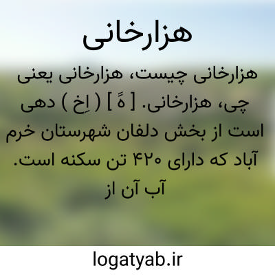 هزارخانی. [ هََ ] ( اِخ ) دهی است از بخش دلفان شهرستان خرم آباد که دارای 420 تن سکنه است. آب آن از چشمه است و محصولش غله و لبنیات و پشم و ساکنان آن از طایفه غیب غلام اند. ( از فرهنگ جغرافیائی ایران ج 6 ).