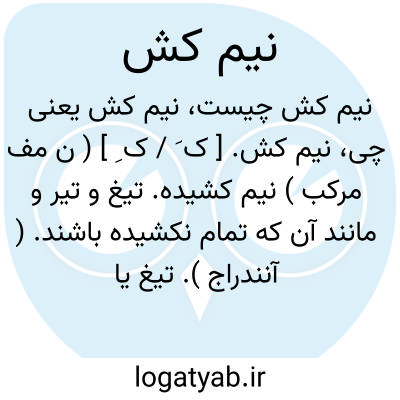 نیم کش. [ ک َ / ک ِ ] ( ن مف مرکب ) نیم کشیده. تیغ و تیر و مانند آن که تمام نکشیده باشند. ( آنندراج ). تیغ یا دشنه یا خنجری که آن را تا نیمه از نیام بیرون کشیده باشند. تیری که در کمان گذاشته و زه کمان را تا نیمه کشیده باشند: