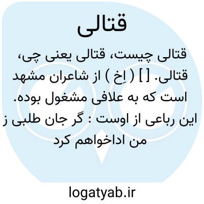 قتالی. [ ] ( اِخ ) از شاعران مشهد است که به علافی مشغول بوده. این رباعی از اوست:
