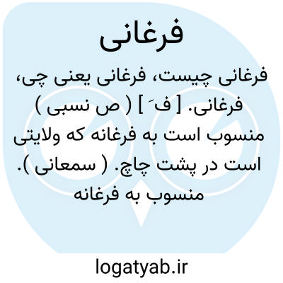 فرغانی. [ ف َ ] ( ص نسبی ) منسوب است به فرغانه که ولایتی است در پشت چاچ. ( سمعانی ). منسوب به فرغانه ماوراءالنهر. ( یادداشت به خط مؤلف ). || منسوب به فرغان از قرای فارس. ( سمعانی ).