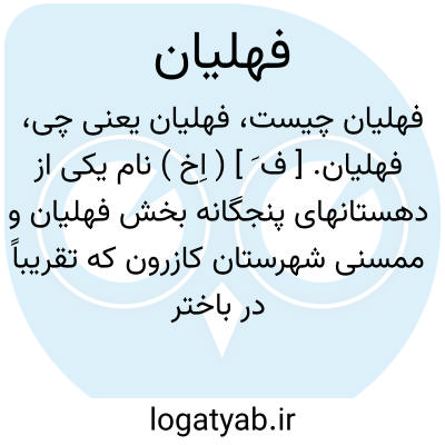 فهلیان. [ ف َ] ( اِخ ) قصبه بخش فهلیان و ممسنی مرکز دهستان فهلیان است که دارای 750 تن سکنه است. آب آن از رود فهلیان و چشمه سارهاست. ( از فرهنگ جغرافیایی ایران ج 7 ).