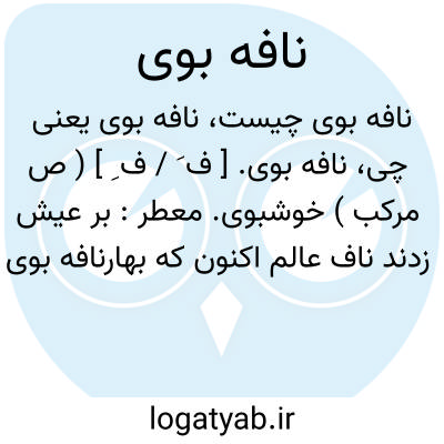 ( نافه بو ی ) ( صفت ) ۱ - خوشبومعطر: بر عیش زدند ناف عالم اکنون که بهار نافه بوی است. ( خاقانی.سج.۲ ) ۵۶۶ -گنده دهان (تسمیه بضداستعاره تهکمیه ): همنشینی که نافه بوی بود خوبتر ز انکه یافه گوی بود. ( نظامی لغ. ) ۳ - سخن چین نمام.