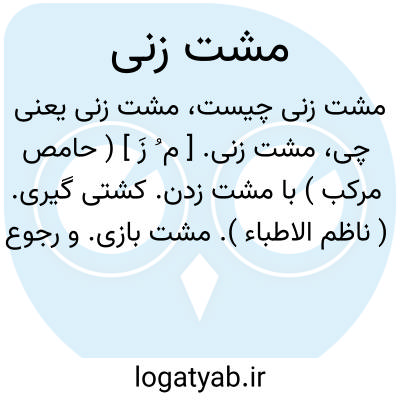 مشت زنی. [ م ُ زَ ] ( حامص مرکب ) با مشت زدن. کشتی گیری. ( ناظم الاطباء ). مشت بازی. و رجوع به مشت بازی شود.
