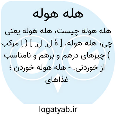 (اسم ) غذاهایی که معمولا مای. خراب کردن مزاج وموجب مرض است تنقلات بی مصرف واحیانا مضر.توضیح مخصوصا خوردن این نوع خوراکیهارا بشکل ریزریزوخردهخرده ودرفواصل زمانی کوتاه ((هلهوهوله ) ) وعمل خورند. آنرا ((هلهوهولهخوردن ) ) گویند