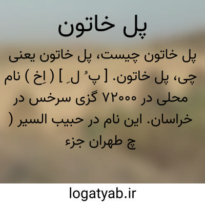 پل خاتون. [ پ ُ ل ِ ] ( اِخ ) نام محلی در 72000 گزی سرخس در خراسان. این نام در حبیب السیر ( چ طهران جزء 3 ج 3 ص 252 ) آمده است.