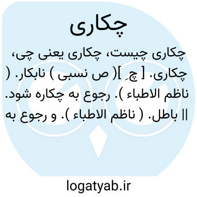 چکاری. [ چ ِ ]( ص نسبی ) نابکار. ( ناظم الاطباء ). رجوع به چکاره شود. || باطل. ( ناظم الاطباء ). و رجوع به چکاره شود. || بی قدر و حقیر. ( ناظم الاطباء ).