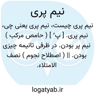نیم پری. [ پ ُ ] ( حامص مرکب ) نیم پر بودن. در ظرفی تانیمه چیزی بودن. || ( اصطلاح نجوم ) نصف الامتلاء. وقتی که ماه در تربیع باشد و آن در شب هفتم و بیست ویکم است. ( یادداشت مؤلف ) ( از مقدمه التفهیم ).