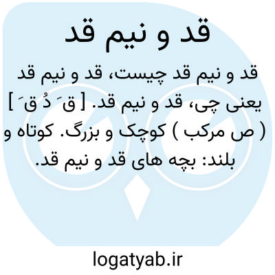 قد و نیم قد. [ ق َ دُ ق َ ] ( ص مرکب ) کوچک و بزرگ. کوتاه و بلند: بچه های قد و نیم قد.