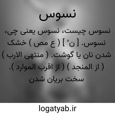 نسوس. [ ن ُ ] ( ع مص ) خشک شدن نان یا گوشت. ( منتهی الارب ) ( از المنجد ) ( از اقرب الموارد ). سخت بریان شدن نان. ( زوزنی ). نسیس. ( المنجد ) ( اقرب الموارد ). || تخبّر. ( المنجد ) ( اقرب الموارد ). || لازم گرفتن روائی هر امر را. ( از منتهی الارب ) ( از اقرب الموارد ). نسیس. ( اقرب الموارد ). || شتاب رفتن. ( منتهی الارب ). تند رفتن. ( از اقرب الموارد ).نسیس. ( اقرب الموارد ). || فرودآمدن در آب خاصة. ( از منتهی الارب ). رجوع به نس و تنساس شود.