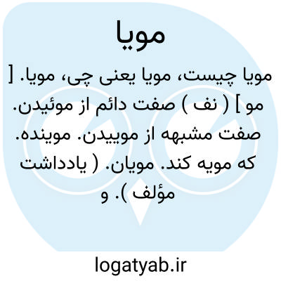 مویا. [ مو ] ( نف ) صفت دائم از موئیدن. صفت مشبهه از موییدن. موینده. که مویه کند. مویان. ( یادداشت مؤلف ). و رجوع به مویان و موینده و موییدن شود.
