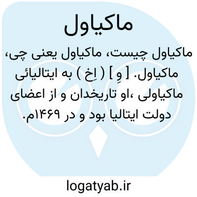 نیکو تاریخدان و سیاستمدار ایتالیایی ( و. فلورانس ۱۴۶۹ - ف. ۱۵۲۷ م. ). وی در راه خدمت بوطن خود فداکاریها کرد و آثاری از خود باقی گذاشت که عبارتند از: [ تیتلیو ] [ شاهزاده ] [ هنر جنگ ] ماکیاول در امور سیاسی معتقد بود که باید تنها رسیدن به هدف را در نظر گرفت و رعایت اصول اخلاقی در این مورد ضرورتی ندارد. روش وی بنام [ ماکیاولیسم ] معروف شد.