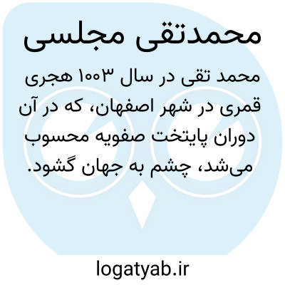 [ویکی شیعه] محمد تقی بن مقصود علی اصفهانی،(۱۰۰۳-۱۰۷۰ق) مشهور به مجلسی اول، پدر علامه مجلسی و از علمای شیعه در قرن یازدهم قمری. از وی آثاری چون روضة المتقین و لوامع صاحبقرانی برجای مانده است، مجلسی در اصفهان و نجف تحصیل کرد، وی در مسجد جامع اصفهان به تدریس علوم دینی مشغول بود و پس از استادانش شیخ بهائی و میر داماد، در این مسجد نماز جمعه اقامه می کرد.