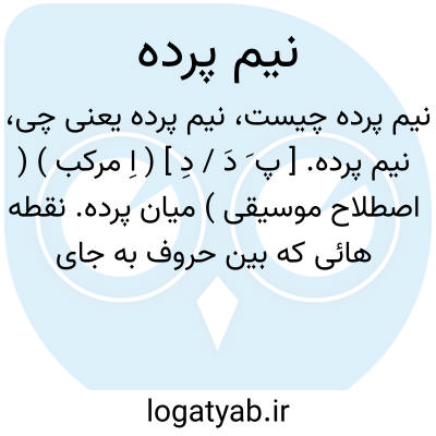 نیم پرده. [ پ َ دَ / دِ ] ( اِ مرکب ) ( اصطلاح موسیقی ) میان پرده. نقطه هائی که بین حروف به جای حروف یا پرده های متروک گذارند. ( از فرهنگ فارسی معین ). رجوع به پرده در این لغتنامه شود.