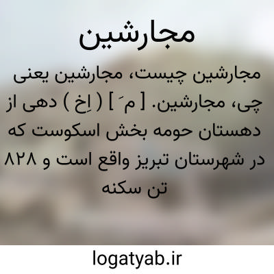 مجارشین. [ م َ ] ( اِخ ) دهی از دهستان حومه بخش اسکوست که در شهرستان تبریز واقع است و 828 تن سکنه دارد. ( از فرهنگ جغرافیایی ایران ج 4 ).