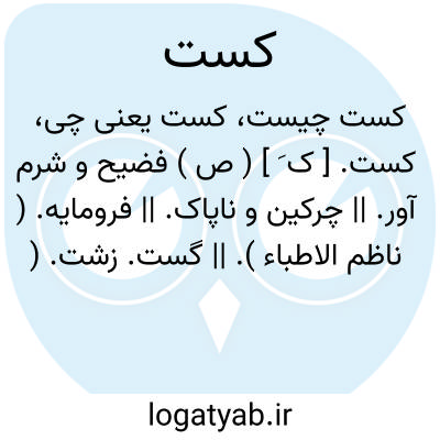 کست. [ ک ُ ] ( اِ ) در زبان پهلوی به معنی جهت و سمت و ناحیه بوده است و ماداکست یعنی ناحیه مد. ( یادداشت مؤلف ). کوست. به معنی طرف و سوی و جهت و ناحیه و حومه و ایالت. ( فرهنگ پهلوی فره وشی ص 274 ). کست در پهلوی به معنی سو و کنار و در فارسی نیز کشت یا کست [ ک ُ ] به همین معنی است چنانکه در لاتینی کستا و در السنه انگلیسی و آلمانی و فرانسه کست و کست و کت از همین ماده است و نیز کلمات کستی و کشتی گیر و برگستوان و غیره. ( خرده اوستای پورداود ص 67 ). و نیز رجوع به خرده اوستا شود.