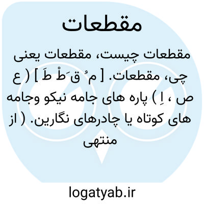 مقطعات. [ م ُ ق َطْ طَ ] ( ع ص، اِ ) پاره های جامه نیکو وجامه های کوتاه یا چادرهای نگارین. ( از منتهی الارب ) ( ناظم الاطباء ). جامه های کوتاه یا بردهای دارای نقش ونگار یا شبه جبه و مانند آن از خز. ( از اقرب الموارد ) ( از محیط المحیط ). || مقطعات الشعر؛ شعرهای سبک وزن و اشعار بحر رجز. ( منتهی الارب ) ( آنندراج ) ( ناظم الاطباء ). المقطعات من الشعر؛ شعرهای کوتاه و ارجوزه ها. ( از اقرب الموارد ) ( از محیط المحیط ). || ( اصطلاح شعر ) قطعه ها. در قدیم به جای قطعات گفته می شده است. ( صناعات ادبی تألیف همایی از انتشارات دانشکده مکاتبه ای ج 1 ص 125 ): هر قصیده که مطلع آن مصرع نباشد اگر چه دراز بود آن را قطعه خوانند و اسم قصیده بر آن اطلاق نکنند و همچنین در رباعی تصریع بیت اول لازم داشته اند تا فرق باشد میان آن و مقطعات دیگر. ( المعجم چ دانشگاه ص 419 ). از قصاید و مقطعات درست ترکیب عذب الفاظ لطیف معانی از دواوین مشهور و اشعار مستحسن در فنون مختلف و انواع متفرق طرفی تمام یادگیرد. ( المعجم ). و رجوع به قطعه شود.