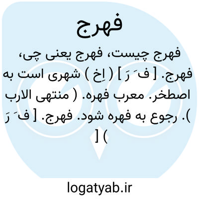 فهرج. [ ف َ رَ ] ( اِخ ) شهری است به اصطخر. معرب فهره. ( منتهی الارب ). رجوع به فهره شود.