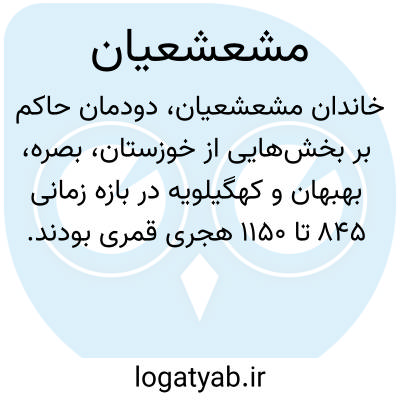 (یا: آل مشعشع) خاندان حاکم خوزستان (۸۴۵ـ۱۱۵۰ق). از غلات شیعه، منسوب به محمد بن فلاح از اعقاب امام موسی کاظم (ع) ملقب به مشعشع که در حدود سال ۸۴۰ق به ادعای مهدویت برخاست. مشعشعیان در اواخر نیمۀ اول قرن ۹ تا ابتدای قرن ۱۰ق در خوزستان، بصره، بهبهان و کهگیلویه به صورت مستقل حکومت کردند و تا ۱۱۵۰ق نیز به صورت فرمانروایان تابع صفویان در هویزه و اطراف آن بودند. استقلال آن ها توسط شاه اسماعیل اول صفوی از بین رفت و حکومت ایشان در خوزستان نیز توسط نادر شاه برافتاد. پس از وفات محمد در ۸۷۰ق، پسرش محسن و سپس پسران او علی و ایوب به امارت رسیدند. با قتل ایشان توسط شاه اسماعیل در ۹۱۴ق حکومت این خاندان در خوزستان به پایان رسید. وی حکومت هویزه و غرب خوزستان را به فلاح پسر دیگر محسن داد و از آن پس نیز فرزندان او بدران و سجاد و زنبور در این منطقه حاکم بودند. سپس مبارک پسرعموی آن ها قیام کرد و تا ۱۰۲۵ق امیر بود و بعد از او نیز پسرش سیدناصر و برادرزاده اش راشد به امارت رسیدند. از ۱۰۲۹ق اختلاف در بین خاندان مشعشع بالا گرفت. سرانجام شاه عباس اول صفوی، منصور، برادر مبارک، را امارت داد و از این پس تا ۱۰۹۷ق کسانی چون محمد، برکه، علی پسرعموی وی، حیدر، عبدالله، فرج الله پسران علی به تناوب از سوی شاه عباس اول و دوم و شاه صفی به امارت رسیدند. فرج الله در ۱۱۰۹ق به فرمان شاه سلطان حسین صفوی بصره را فتح کرد. وی در ۱۱۱۱ق عزل شد و عمویش هیبت امیر گردید. تا ۱۱۳۲ق نیز کسانی از این خاندان به تناوب امارت یافتند. گویا محمد بن عبدالله در فتنۀ افغان بارها به سلطان حسین خیانت کرد. او در ۱۱۳۵ق توسط محمود افغان امارت یافت و نادرشاه نیز او را ابقا کرد. در ۱۱۴۵ق نادر هویزه را گرفت و حکومت مشعشعیان را برانداخت و در ۱۱۵۰ق حکامی دیگر را به امارت آن جا گمارد. آخرین والی مهم این خاندان مُطلّب بود که در اواخر عهد نادر قیام کرد. پس از او خاندان مشعشع دیگر نتوانست قدرت و نفوذ سابق را در خوزستان به دست آورد. هرچند که تا اواخر دوره قاجاریه بر ناحیۀ هویزه حکومت داشتند.