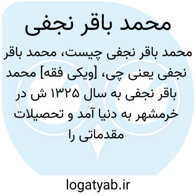 [ویکی فقه] محمدباقر نجفی (ابهام زدایی). محمدباقر نجفی ممکن است اشاره به اشخاص و شخصیت های ذیل باشد: • محمدباقر نجفی اصفهانی، از علمای نام دار قرن سیزدهم هجری و از مبارزان بر علیه فرقه ضاله بابیه• دکتر محمدباقر نجفی، از مؤلفین و محققین معاصر و دارای تألیفات متعدد