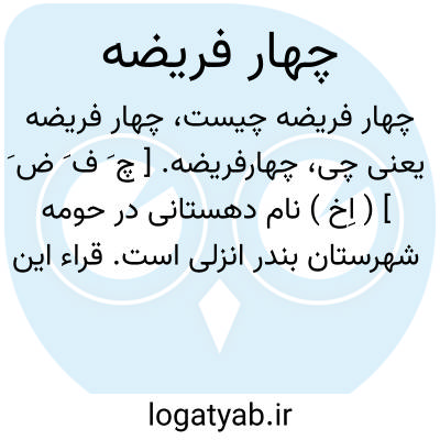 چهارفریضه. [ چ َ ف َ ض َ ] ( اِخ ) نام دهستانی در حومه شهرستان بندر انزلی است. قراء این دهستان در حومه بندر انزلی تا شعاع 6 فرسخ واقع است و از 22 آبادی بزرگ و کوچک تشکیل شده است. جمعیت آنها روی هم رفته در حدود 16هزار نفر میباشد و قراء مهم آن به شرح زیر است: آبکنار، کپورچال، سنگاچین، خمیران، کلور و بشمن. ( از فرهنگ جغرافیایی ایران ج 2 ).