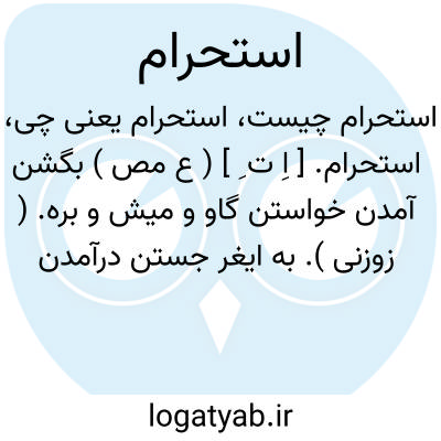 استحرام. [ اِ ت ِ ] ( ع مص ) بگشن آمدن خواستن گاو و میش و بره. ( زوزنی ). به ایغر جستن درآمدن حیوانات. بگشن آمدن میش. ( تاج المصادر بیهقی ). گشن خواه شدن: استحرمت ذات الظلف و الذئبة و الکلبة. ( منتهی الارب ). || با حرمتی شدن که شکستن آن روا نباشد. ( منتهی الارب ).