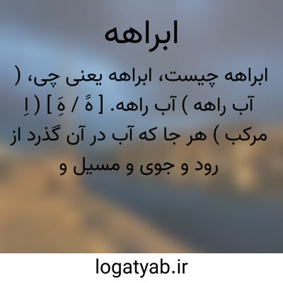 ( آبراهه ) ( اسم ) ۱- راه آب مجرای آب آب راه. ۲ - گذرگاه سیل ۳ - سیلاب.