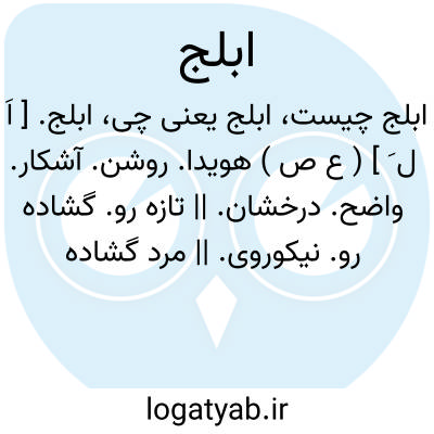ابلج. [ اَ ل َ ] ( ع ص ) هویدا. روشن. آشکار. واضح. درخشان. || تازه رو. گشاده رو. نیکوروی. || مرد گشاده ابرو. ( تاج المصادر بیهقی ). خلاف اَقرن. مؤنث: بَلْجاء. ج، بُلج.