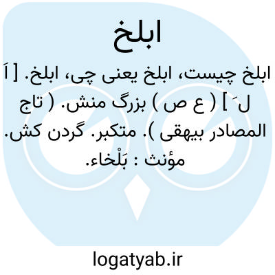 ابلخ. [ اَ ل َ ] ( ع ص ) بزرگ منش. ( تاج المصادر بیهقی ). متکبر. گردن کش. مؤنث: بَلْخاء.