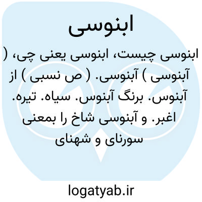 ( آبنوسی ) آبنوسی. ( ص نسبی ) از آبنوس. برنگ آبنوس. سیاه. تیره. اغبر. و آبنوسی شاخ را بمعنی سورنای و شهنای آورده اند: